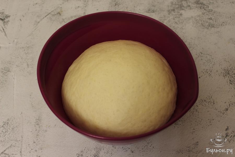 3. Смажьте миску растительном маслом и выложите в нее замешенное тесто. Накройте полотенцем и оставьте подниматься на 1,5-2 часа.