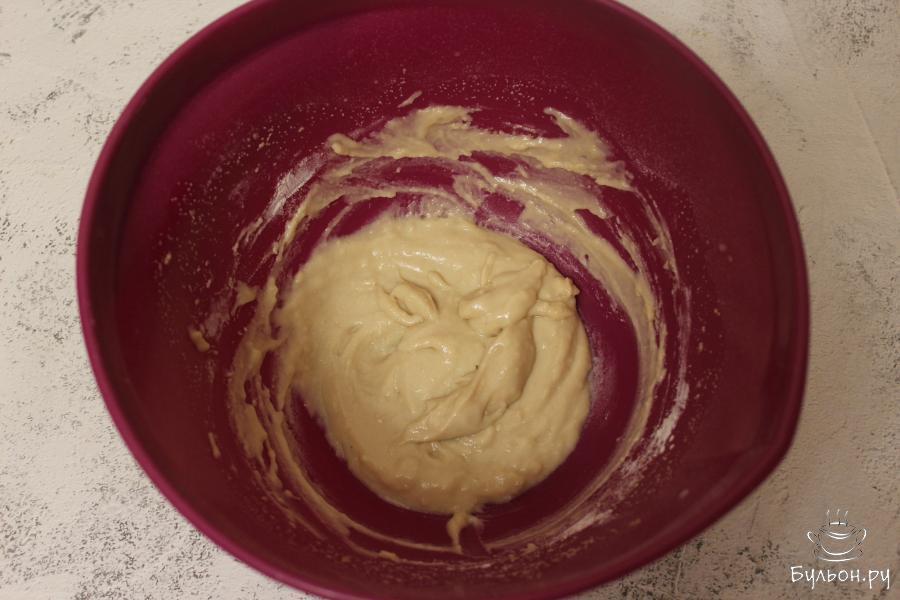 1. Чуть теплое молоко смешайте с сахаром и дрожжами. Всыпьте 5 ст. л. просеянной муки, перемешайте и оставьте на 20 минут. Это будет наша опара.