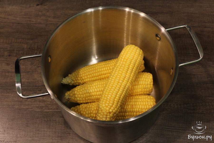 4. В кастрюлю налейте воду, чтобы она полностью покрывала початки. Поставьте кастрюлю на огонь, доведите ее содержимое до кипения, добавьте специи из овощей. Уменьшите огонь и варите кукурузу. Я варю кукурузу в течение 4 часов.