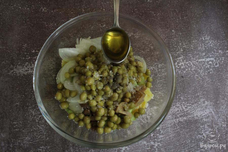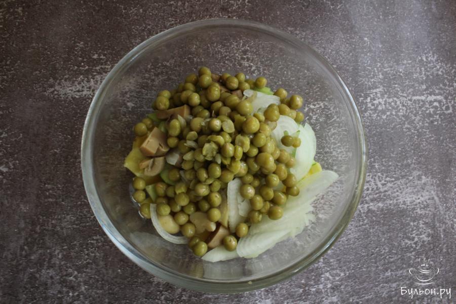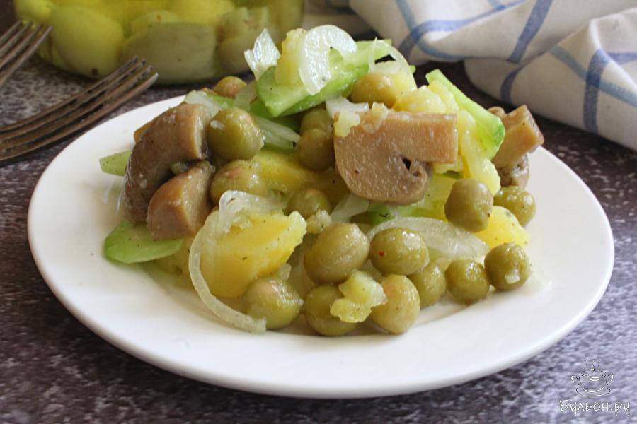 Картофельный салат с шампиньонами, огурцами и горошком сытный и насыщенный. Порцией такого салата вполне можно заменить обед или ужин. Готовится этот салат просто и быстро. Он получается вкусный, нежный, ароматный и аппетитный. В салат, по желанию, можно добавить лимонный сок, мелко нарезанную любимую зелень и получить новый вкус. Попробуйте приготовить этот салат, наверняка он понравится всей семье.