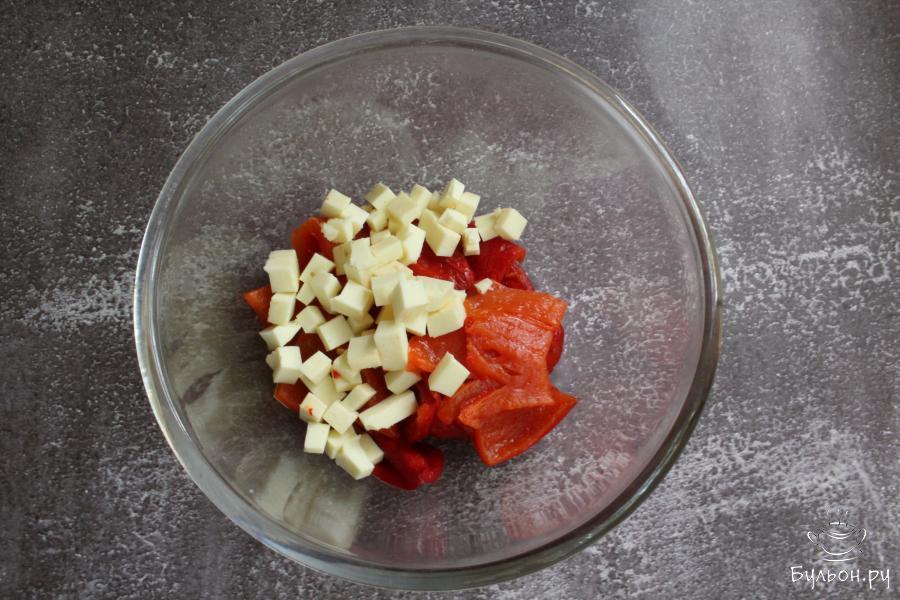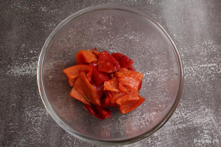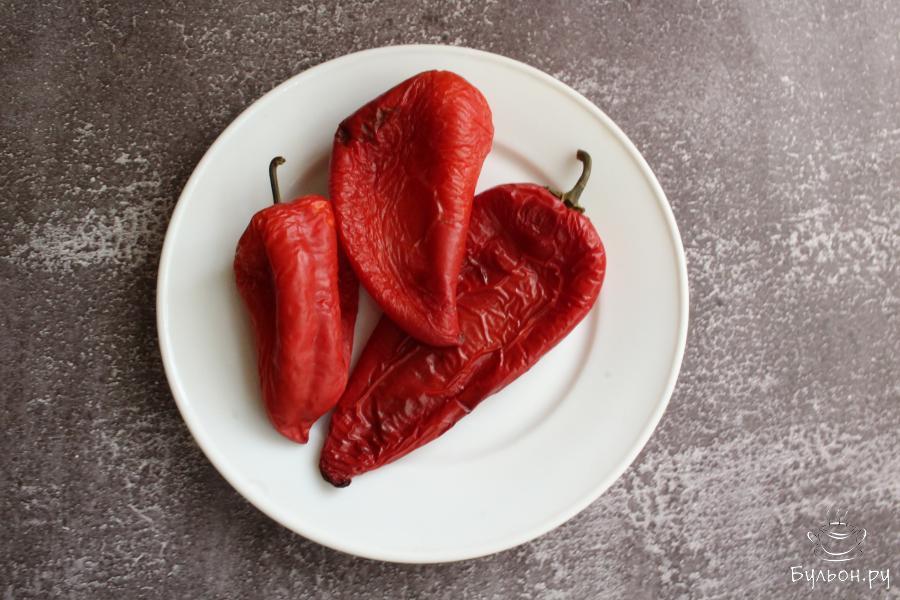 1. Перцы промыть, выложить на противень. Духовку разогреть до 180 градусов, запекать перцы 20-25 минут.