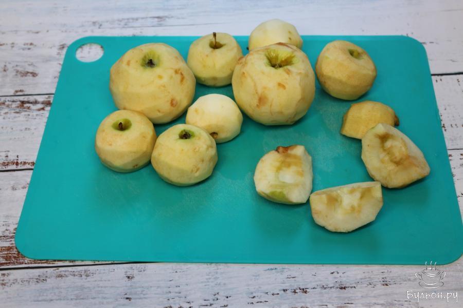 1. Возьмите, по возможности, сладкие и ароматные яблоки. Вымойте яблоки, обсушите их. Затем очистите от кожицы, разрежьте на 4 части, удалите семенную коробку.