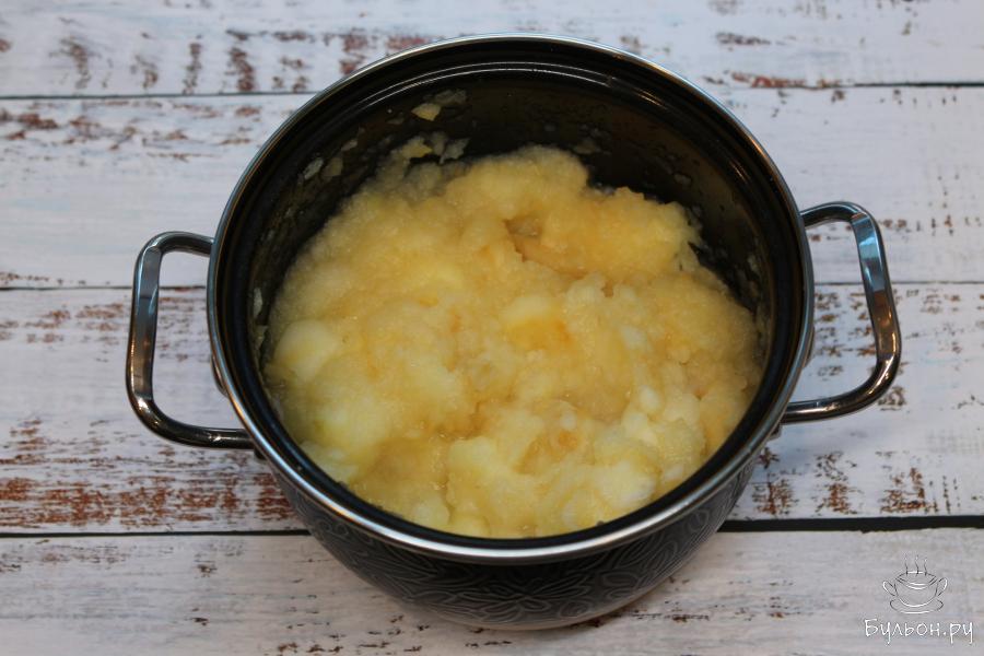 6. Пюре остудите до теплого состояния, после чего взбейте блендером, так оно станет более воздушным и нежным. Верните кастрюлю на плиту и еще раз доведите до кипения.