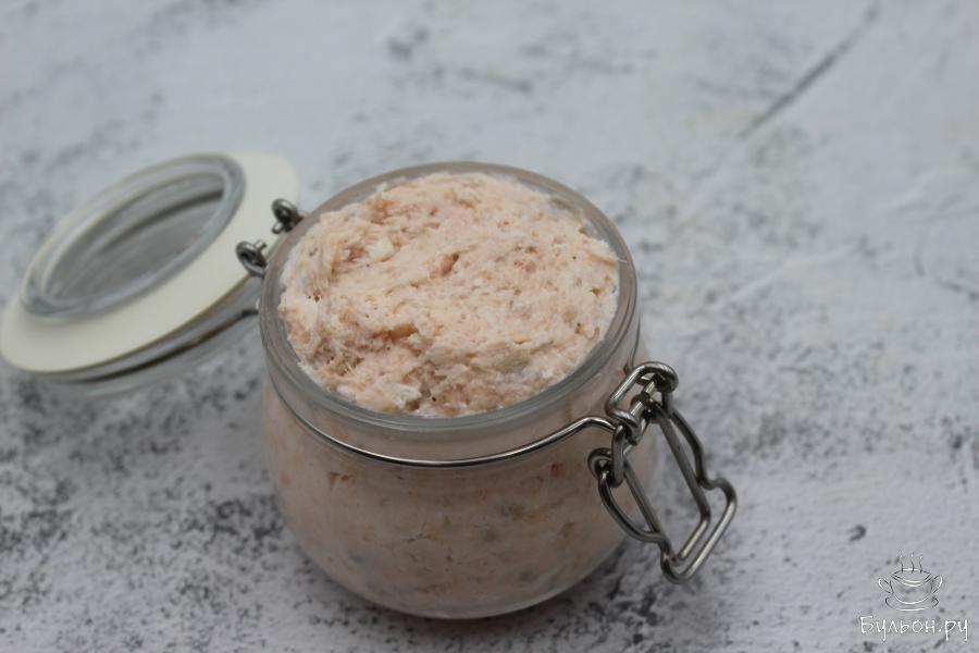 5. Переложите риет в стеклянную баночку с крышкой и подайте на стол в качестве закуски. Храните риет в холодильнике.