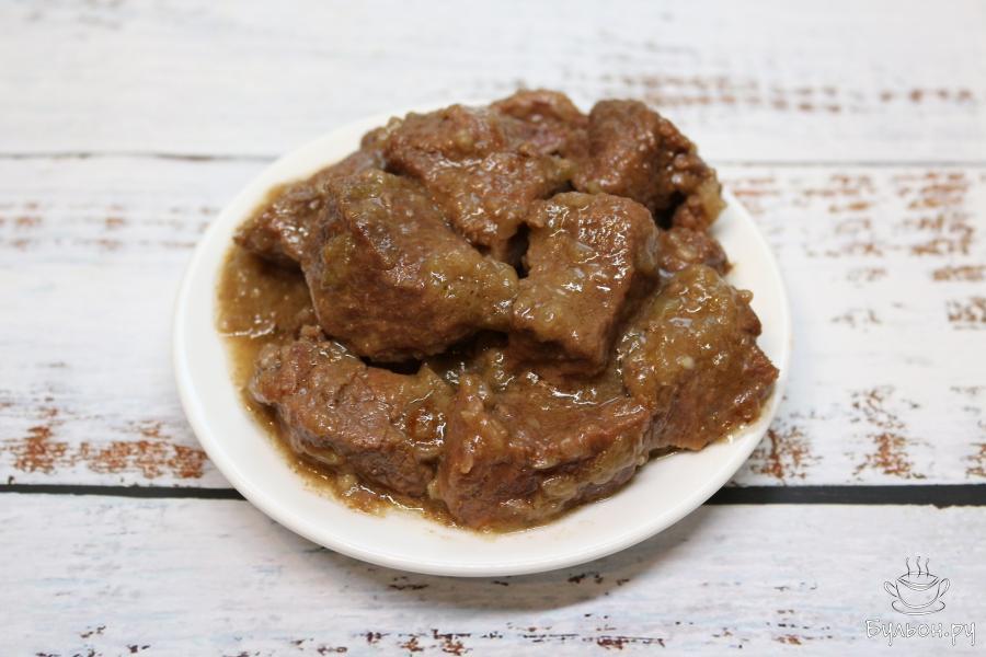 6. Все перемешайте и тушите до готовности. На это уйдет еще 1,5 часа. В конце откройте крышку и потушите без нее, чтобы стало поменьше соуса.