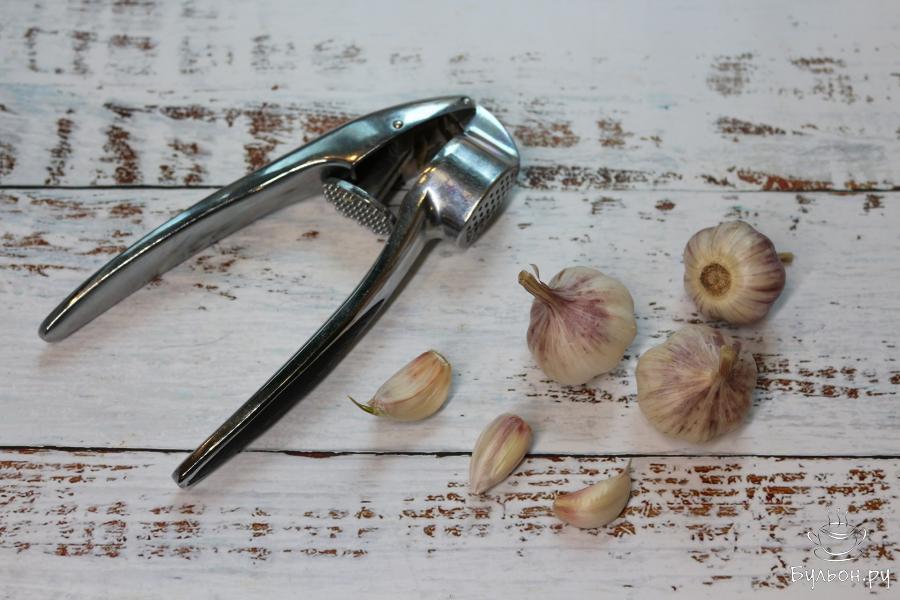 4. Чеснок очистите любым способом. Продавите через пресс для чеснока, либо натрите на терке или просто мелко нарежьте.