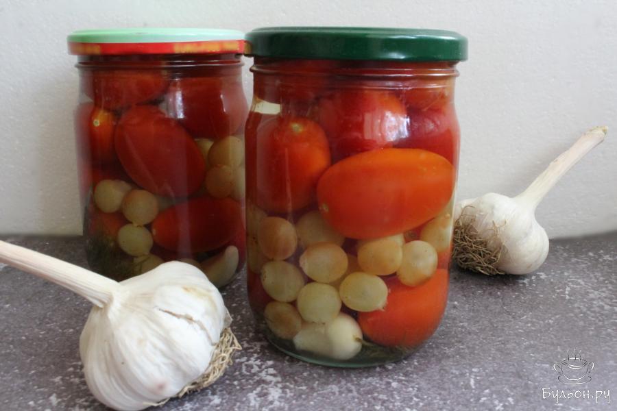 Маринованные помидоры с белым киш-мишом на зиму порадуют всех любителей зимних заготовок из помидоров. Помидоры получаются вкусные, нежные, с очень приятным, в меру сладким рассолом. Такие помидоры можно сделать без добавления острого перца, если вы не любите острые маринады. Томаты для этой заготовки выбирайте небольшие, плотные, можно взять помидоры черри. Киш-миш можно использовать как белый, так и темный, это по вашему выбору.