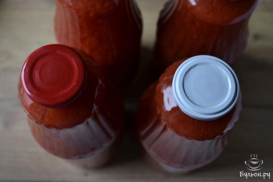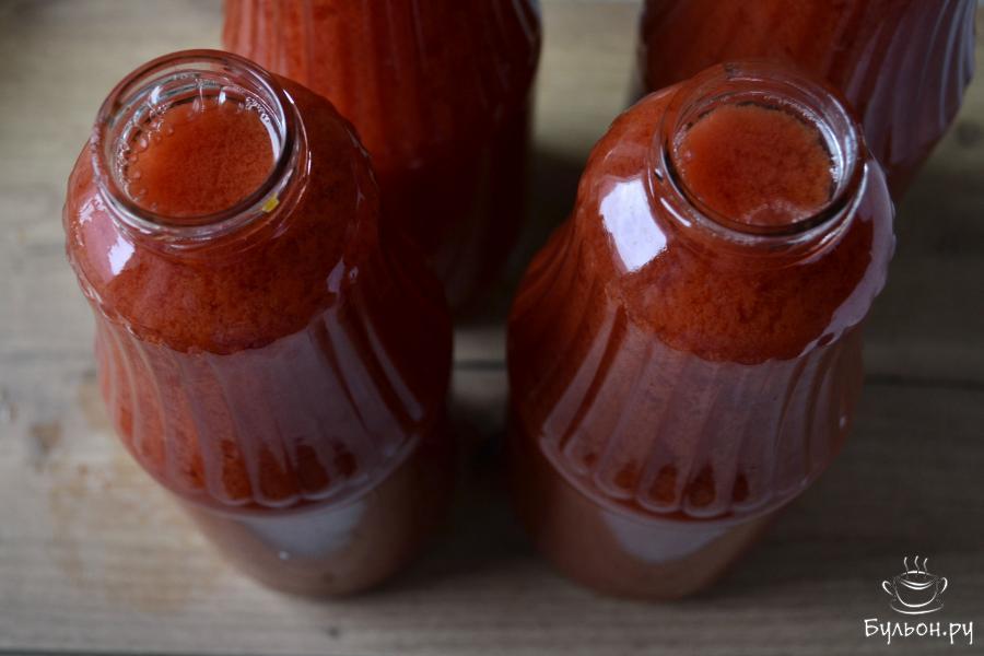 8. Остывшие бутлки с соком храните в прохладном помещении. Томатный сок хорошо хранится в течение года.