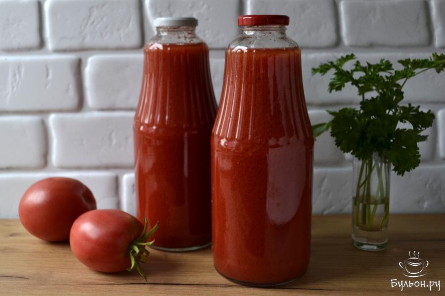 Из спелых томатов можно приготовить вкусный и очень полезный томатный сок на зиму. Процесс не сложный. Нужно измельчить помидоры и проварить их. Помидоры можно прокрутить на мясорубке или использовать соковыжималку. С использованием соковыжималки сок получится без семечек. В конце варки можно добавить немного соли, а можно обойтись и без нее. Томатный сок и без соли хорошо хранится. Приготовленный таким способом сок, можно выпить просто так или использовать для приготовления коктейлей.