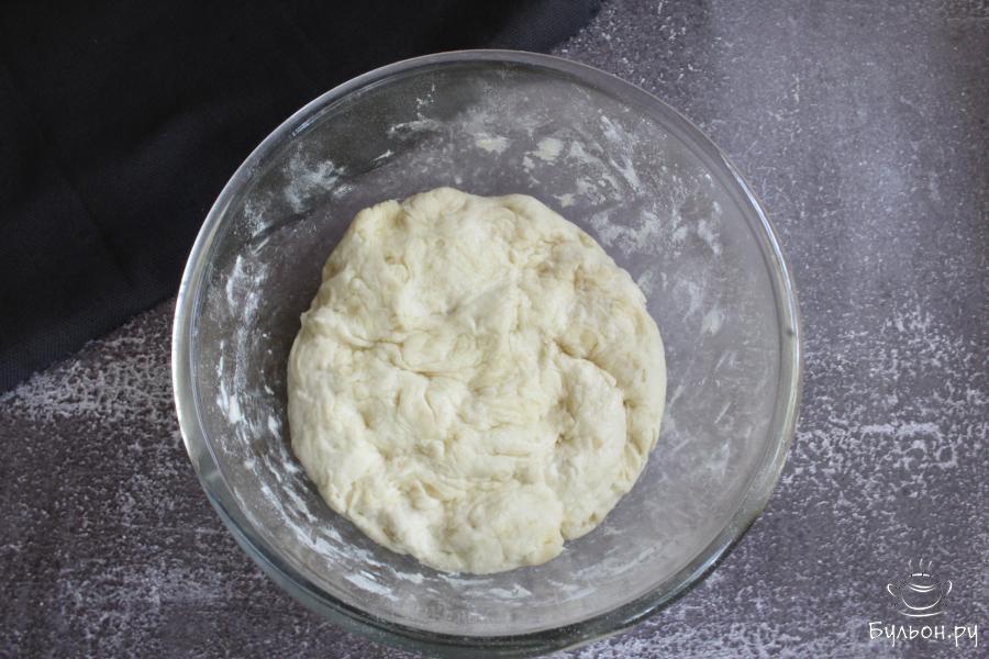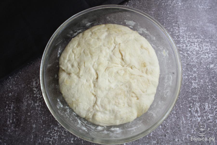 6. Подошедшее тесто обмять. Чтобы тесто не липло, можно смазать руки маслом, можно обминать с небольшим количеством муки.
