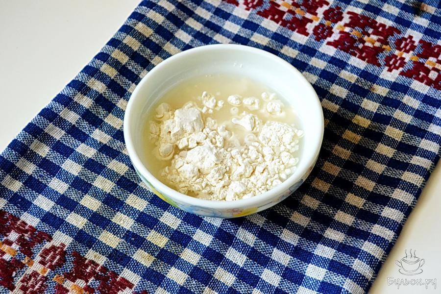 2. Молоко нагревается, одним глазом мы следим за ним, а тем временем, разводим муку холодной водой. Воду вливать понемногу и перемешивать, чтобы не было комочков.