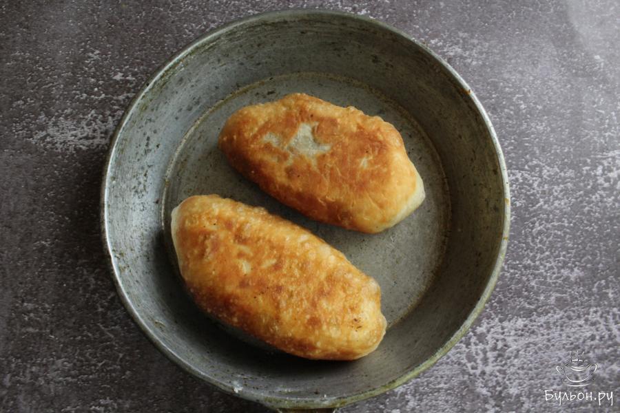 11. Жарить пирожки на сковороде с разогретым маслом, до красивой румяности, по 2-3 минуты с каждой стороны, на среднем огне.