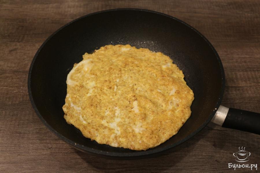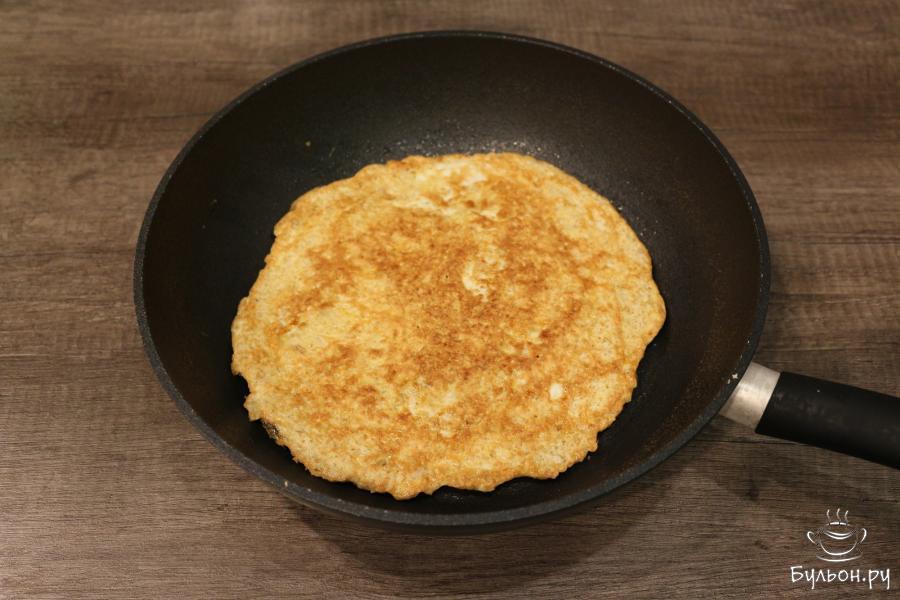 4. Как только образовалась корочка с одной стороны, нужно очень аккуратно перевернуть блин на другую сторону, чтобы не порвать его. Обжарить вторую сторону тоже до золотистого цвета.