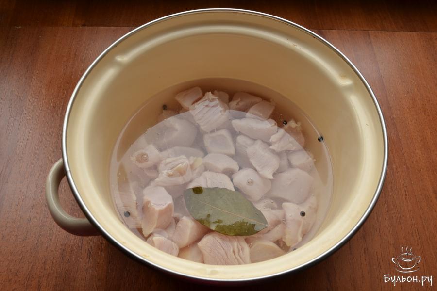 3. Поместить кусочки курицы в горячий маринад. Накрыть крышкой кастрюлю и оставить филе для маринования на 4 часа.