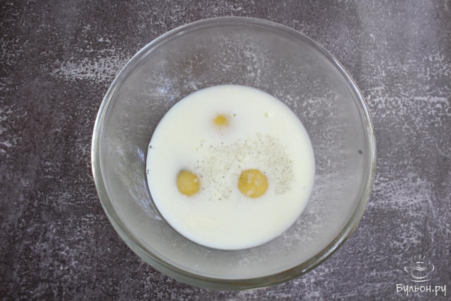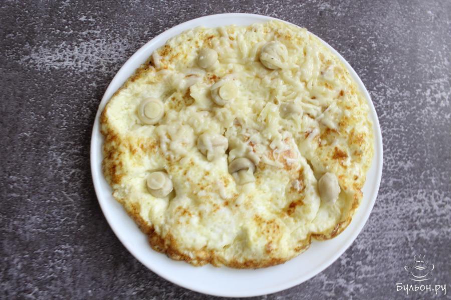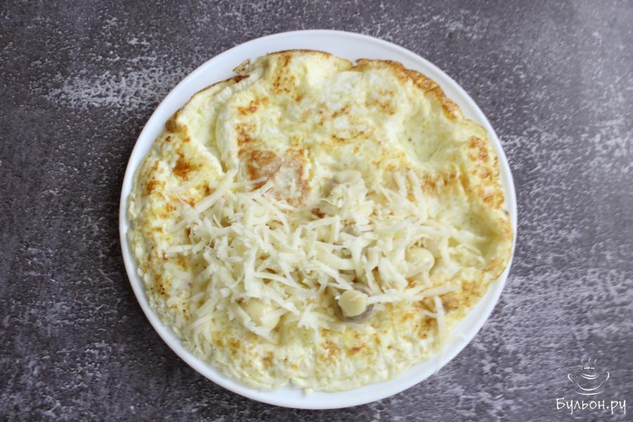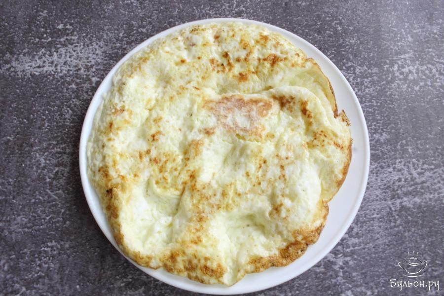 2. На разогретой сковороде приготовить омлет. Жарить омлет под крышкой, с одной стороны, несколько минут.