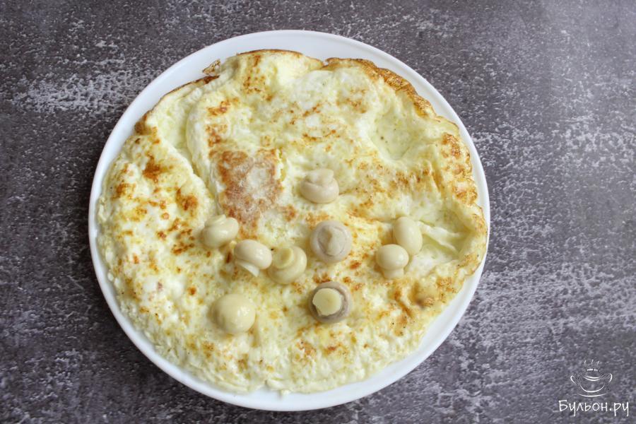 Омлет с маринованными шампиньонами - это прекрасный вариант для завтрака, такой омлет зарядит вас энергией до обеда. Омлет готовится очень быстро. Он получается легкий, нежный, сочный и вкусный. Омлет можно сложить пополам или свернуть рулетом, чтобы начинка была внутри, а можно подать так. Если грибы крупные, то их нужно нарезать, а если шампиньоны мелкие, то их можно использовать в целом виде. Сыр для приготовления выбирайте свой любимый, твердый.