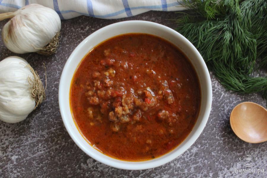 Греческий мясной соус Кима - это очень вкусный и замечательный вариант подливки с фаршем, которая подойдет практически к любому гарниру. Такой соус можно сделать острый, добавить перец чили, мелко нарезанный чеснок, можно приготовить соус на мясном бульоне и даже добавить красное вино вместо половины бульона. Соус получается пряный, густой, вкусный и насыщенный. Готовится такое блюдо быстро и просто.