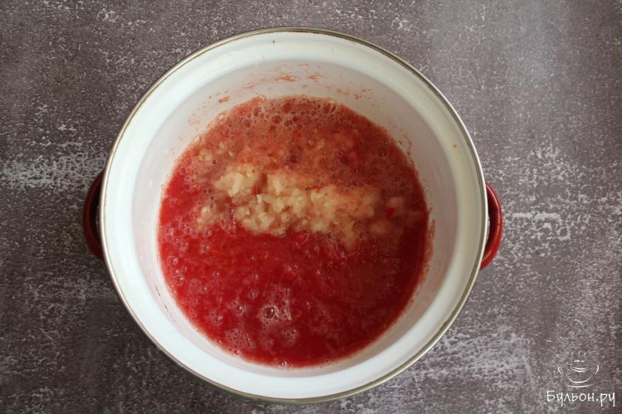 3. Добавить в кастрюлю 2 ст. л. оливкового масла. Поставить посуду на огонь и тушить овощную массу 5 минут.