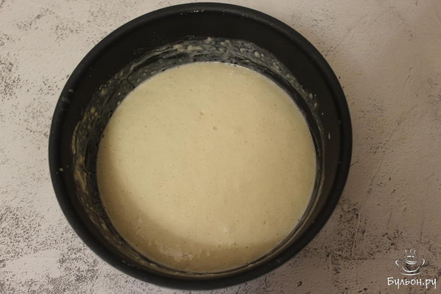1. Приготовьте опару. В небольшую миску просейте 100 гр. муки, всыпьте быстродействующие дрожжи и 1 ст. л. сахарного песка. Влейте подогретое, до 35 градусов, молоко. Перемешайте и оставьте на полчаса, накрыв миску полотенцем.