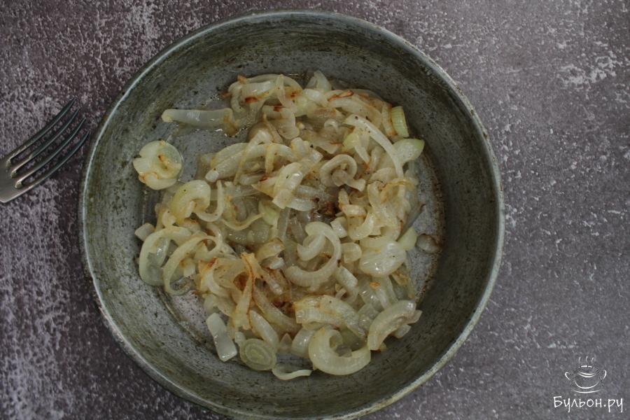 1. Лук почистить, промыть, мелко нарезать и обжарить на сковороде с разогретым маслом до золотистого цвета.