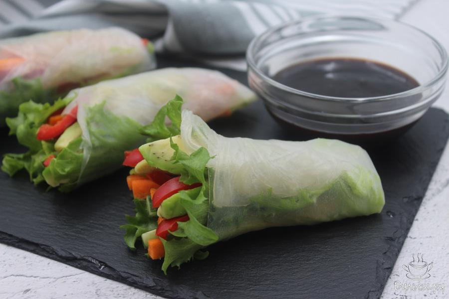 Людям, которые следят за своим питанием, я очень рекомендую приготовить спринг-роллы со свежими овощами. Это очень разнообразить вашу трапезу, а сама подача порадует своей яркостью и не избитостью. Овощи можно использовать любые, но я предлагаю классический вариант. Как правило, в качестве соуса подают соевый, однако мне очень нравится кушать спринг-роллы с домашним соусом терияки, рецепт которого я также публиковала на сайте.