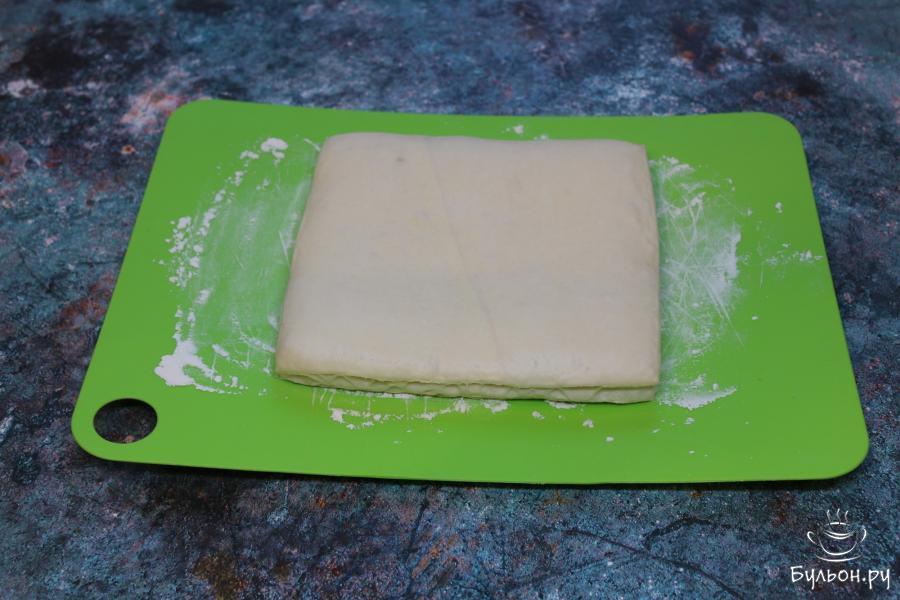 1. Из морозилки достаньте тесто, накройте его, чтобы оно не обветривалось и оставьте так до полной разморозки. По времени это около 2 часов.
