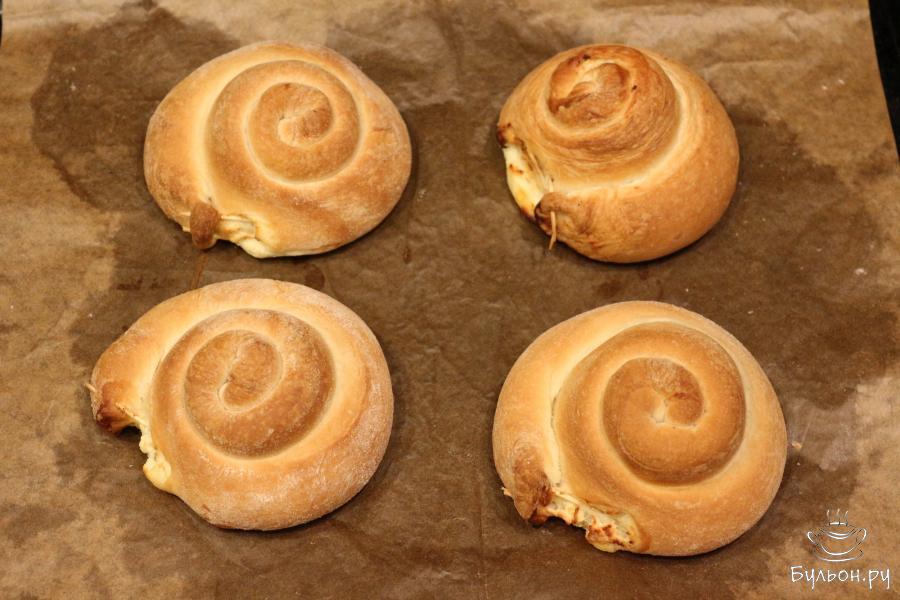 6. Готовые улитки выложите на противень с пекарской бумагой. Накройте их полотенцем, пусть расстоятся еще в течение 20 минут. Затем поставьте их уже в разогретую до 180 градусов духовку, выпекайте 15-20 минут.