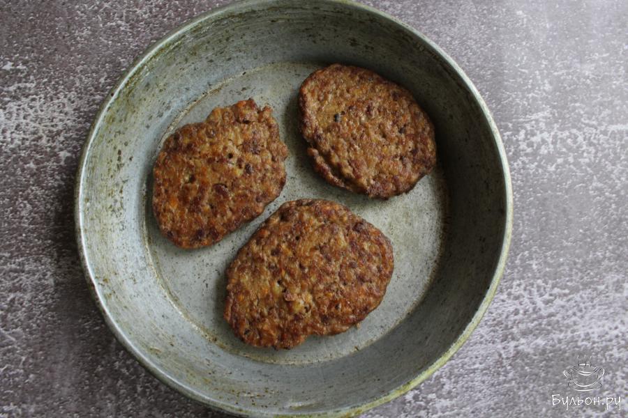 6. Вкладывать фарш столовой ложкой на сковороду с разогретым маслом. Жарить оладьи по паре минут с каждой стороны.