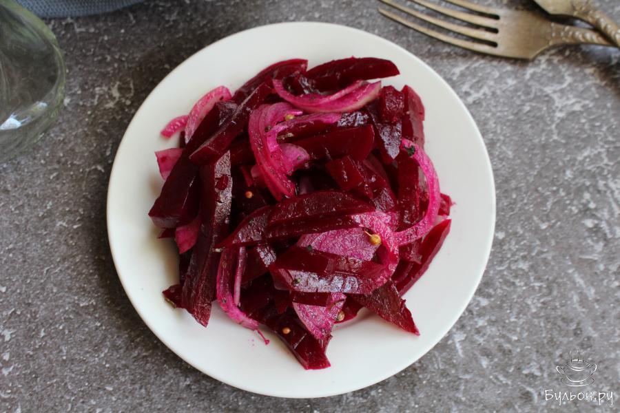 Маринованная свекла с зернами кориандра - это очень вкусная, сочная, ароматная и полезная закуска, которая порадует любителей закусок из свеклы. Готовится маринованная свекла просто. По желанию, такую яркую закуску можно сделать острой, а можно совсем не добавлять острый перец. Если у вас под рукой нет винного уксуса, то можно заправить овощи яблочным уксусом или лимонным соком. Перед подачей маринованную свеклу можно охладить.