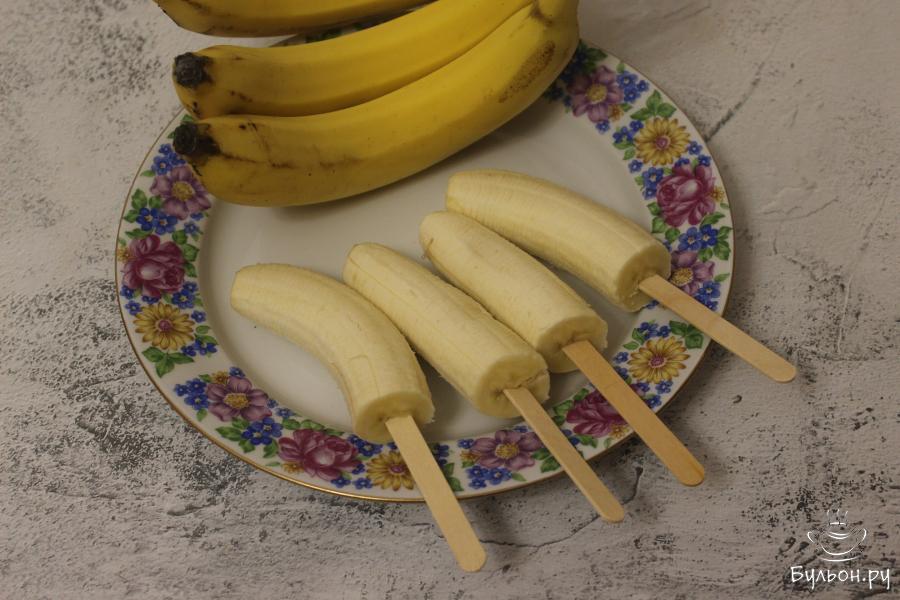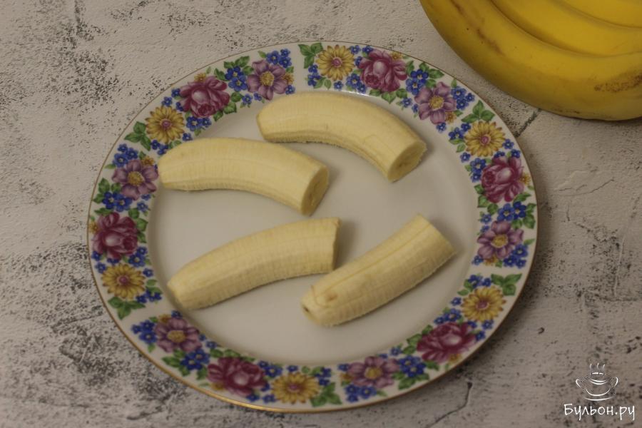 1. Бананы очистите от кожуры и разделите каждый из них на 2-3 части. Это зависит от размера самих бананов.