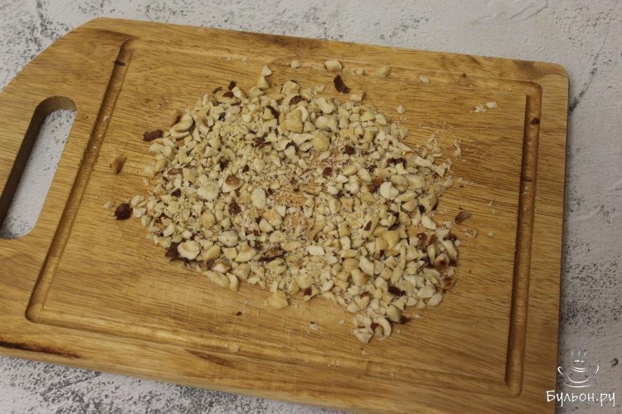 3. Орехи измельчите с помощью острого ножа, но не в очень мелкую крошку, кусочки орехов должны просматриваться.