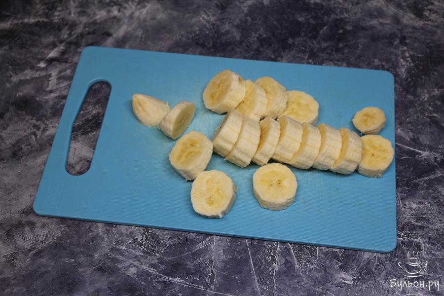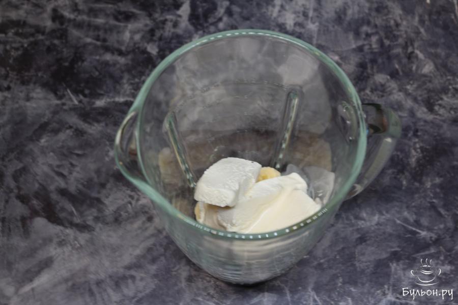 3. В блендер выложите кусочки банана, мороженное и сливки. Взбейте эти ингредиенты в течение 3 минут.