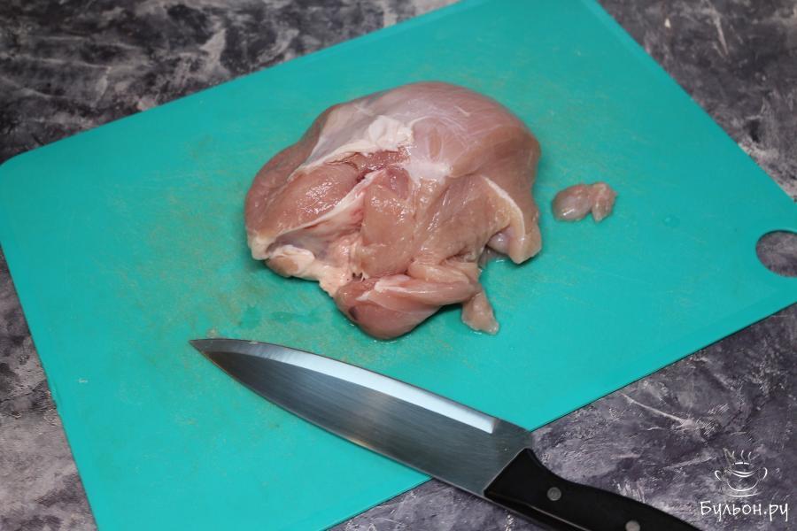 1. Филе индейки вымойте, удалите все пленочки, жир и прожилки, сделайте так, чтобы осталось только мясо в чистом виде.