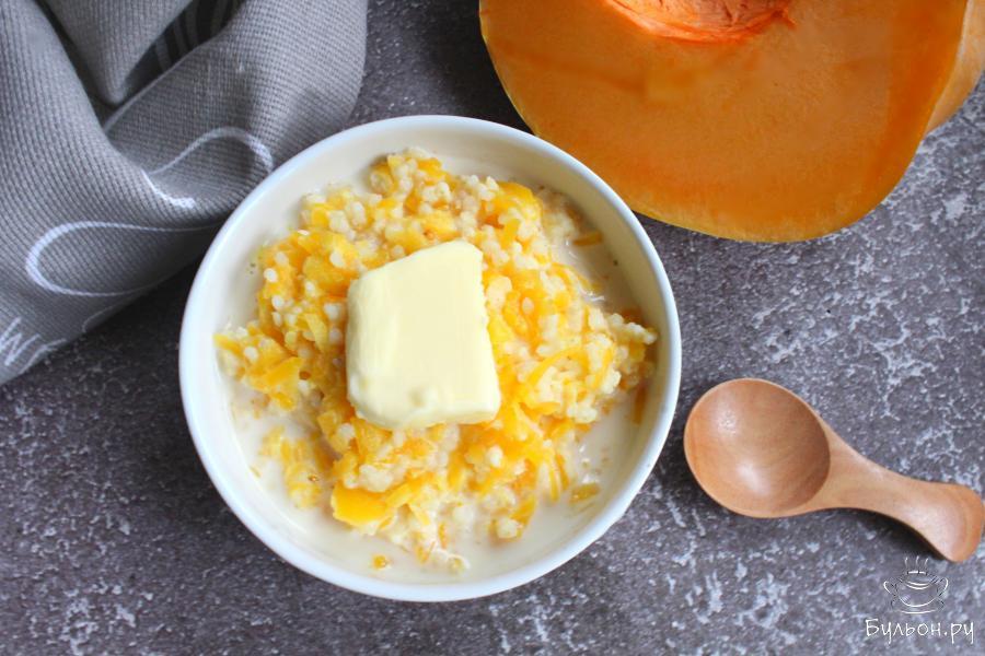 Если вы любите блюда с тыквой, то обязательно попробуйте приготовить на завтрак или на полдник тыквенную кашу. Это очень вкусно! Тыквенная каша с пшеном на молоке - такая каша получается нежная, сладкая и сытная. Количество молока регулируйте по своему вкусу, добавляйте столько, чтобы вас устраивала густота каши. Если вам досталась сладкая тыква, то может быть в кашу, даже, не нужно будет добавлять сахар. Вместо сахара можно добавить мед в уже готовую кашу и тогда она станет еще полезнее.