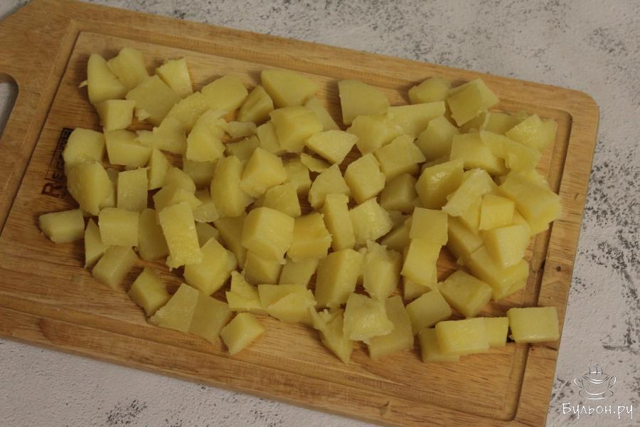 1. Поставьте вариться картофель в мундире. У меня картофель крупный, поэтому достаточно двух картофелин.