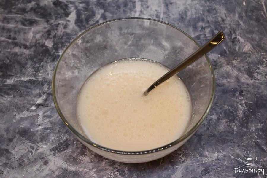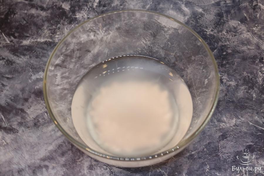 1. Влейте теплую воду в глубокую миску. Раскрошите в воду свежие дрожжи. Всыпьте сахар, перемешайте. Накройте миску и оставьте в теплом места на 15 минут.
