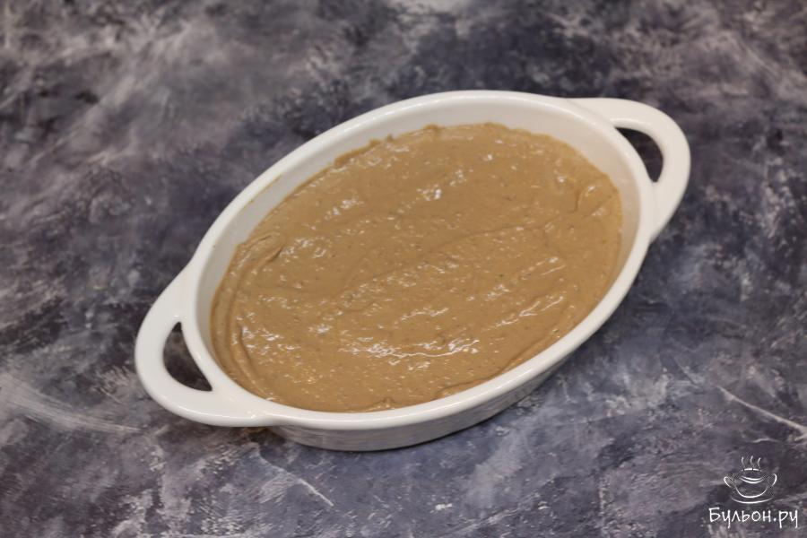 7. Влейте в сковороду сливки, добавьте соль, перец и мускатный орех, все хорошо перемешайте. Убавив огонь, готовьте паштет под крышкой 10 минут. После огонь выключите и остудите содержимое сковороды.