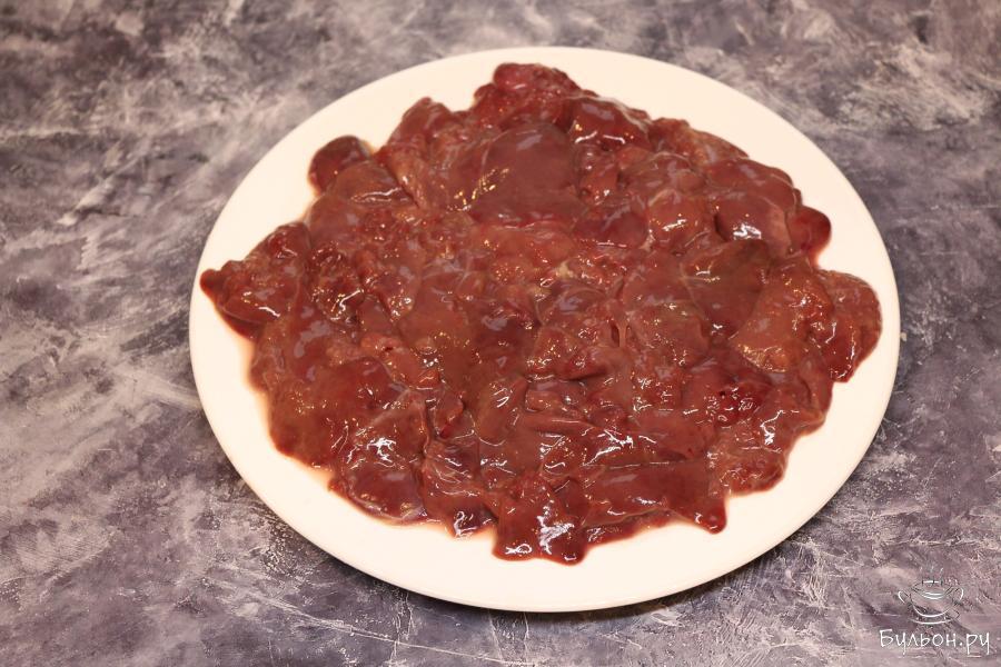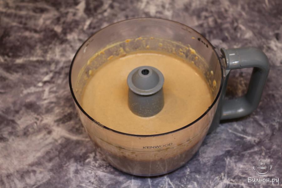 8. С помощью блендера, измельчите печень, превратив ее в паштет и сделав это в несколько приемов. Так как емкость блендера небольшая, за один раз невозможно будет пробить всю печень сразу.