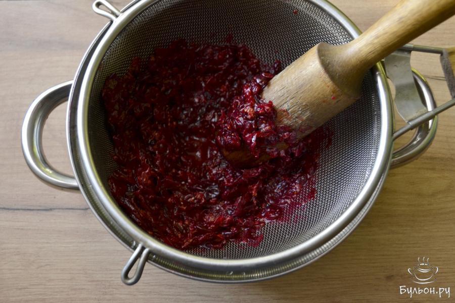 9. Перемешайте клюквенное пюре с отваром и добавьте по вкусу сахар. Размешайте, чтобы сахар полностью растворился. Морс готов.