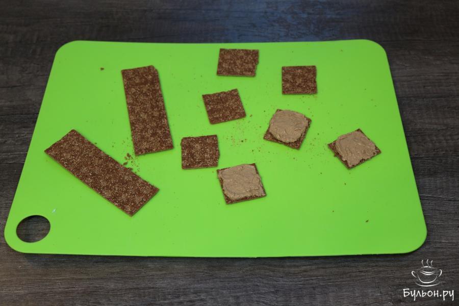 На праздники очень хорошо расходятся канапе и мини закуски. Поэтому, предлагаю приготовить очень вкусную закуску с печеночным паштетом, которая представляет собой маленькие квадратики ржаных тонких хлебцев, намазанные печеночным паштетом и красиво украшенные сыром и маринованным огурчиком. Сыр и огурец можно заменить другими продуктами. Это может быть кусочек болгарского перца или, например, колечко маслины или оливки. Украсить закуску, можно, по своему желанию и вкусовым предпочтениям.