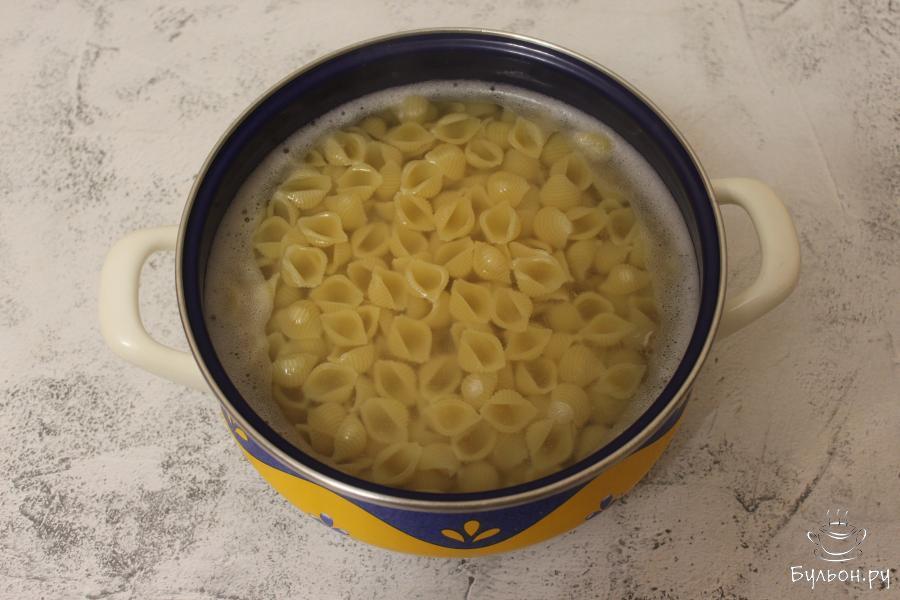 1. Поставьте вариться пасту. Варите макаронные изделия в чуть подсоленной воде до состояния аль денте.