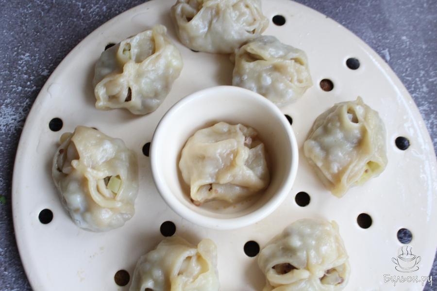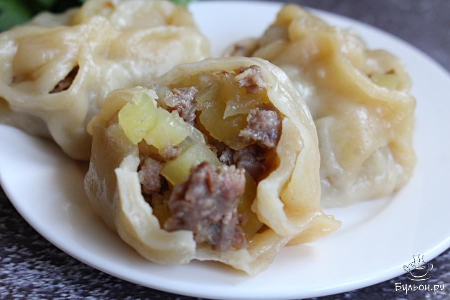 Манты с мясным фаршем и картофелем порадуют своим вкусом всех любителей паровых блюд. Готовится такое блюдо не очень быстро, но результат стоит ожиданий. Манты получаются сытные, нежные, вкусные, с сочной и ароматной начинкой. Чем тоньше раскатываем тесто, тем нежнее будут манты. В начинку можно добавить и другие свои любимые пряности. К мантам можно подать жирную сметану, простоквашу, любые томатные соусы и заправки, которые вы любите.