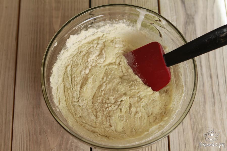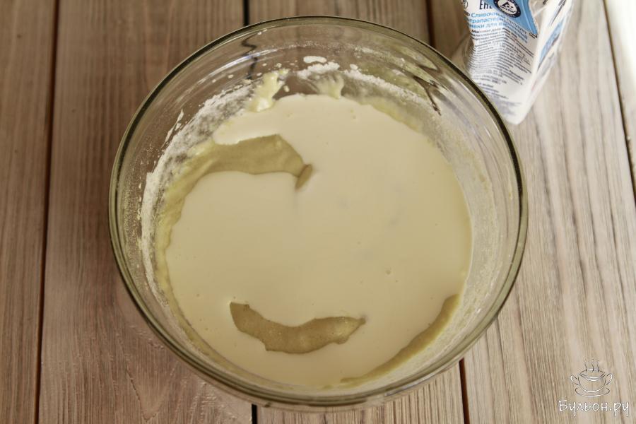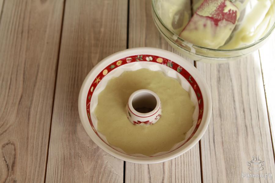 6. Все ингредиенты хорошо перемешать между собой. Форму смазать сливочным маслом и заполнить ее тестом.