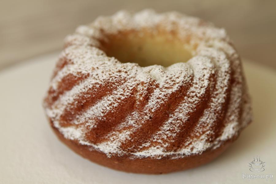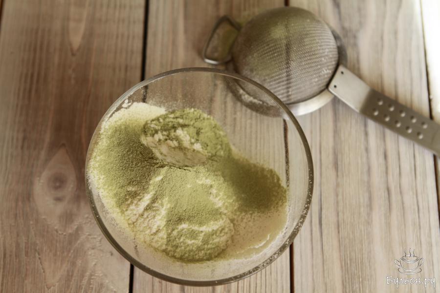 7. Выпекать кекс 30-40 минут при температуре 180 градусов до готовности. Кекс с чаем матча остудить и перед подачей присыпать сахарной пудрой.