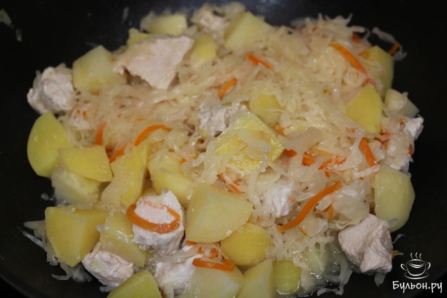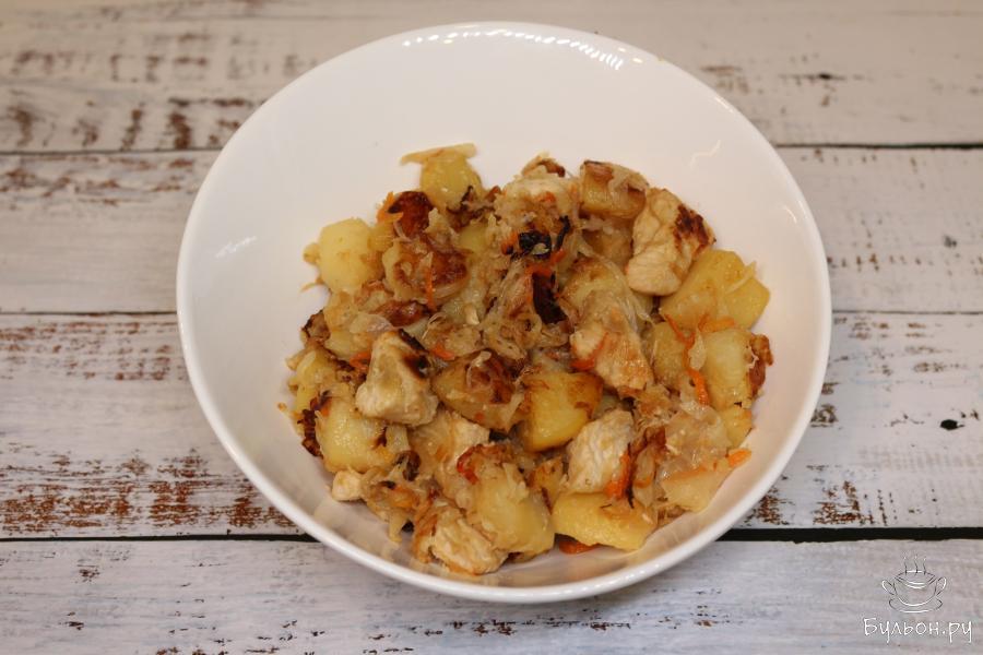 Если вы любите простую пищу, которая не перегружена ингредиентами, состоит из понятных компонентов и их количество ограничено, то приготовьте жаркое из индейки с картофелем и квашенной капустой. Блюдо простое, состоит всего из трех основных ингредиентов, но ни в коем случае не уступает сложным блюдам. Ни по вкусу, ни по внешнему виду. Оно очень аппетитное, аромат при приготовлении стоит на всей кухне. Так же оно очень сытное.