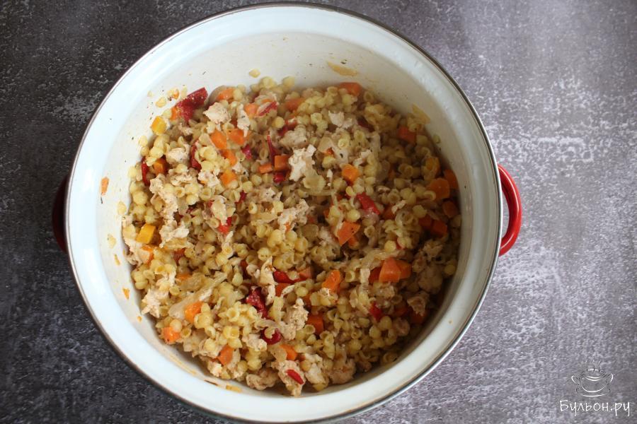8. Накрыть крышкой и готовить блюдо до мягкости макарон. На это уйдет 8-10 минут. Приятного аппетита!