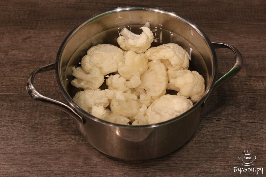 3. Выложите капусту в кастрюлю, залейте ее холодной водой. Поставьте на огонь, и после закипания варите капусту 10-12 минут.