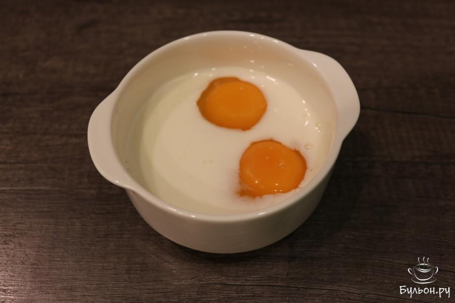 1. Вбейте яйца в емкость, добавьте соль и влейте молоко. В течение нескольких минут взбейте все вилкой.