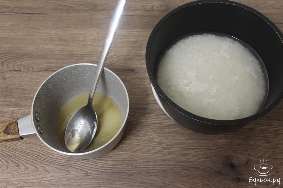 1. Рис отварите в воде, как это следует сделать для суши. Приготовьте заправку, прогрев в ковшике рисовый уксус с сахаром и 0,75 ч. л. соли. Смешайте рис с приготовленной заправкой.