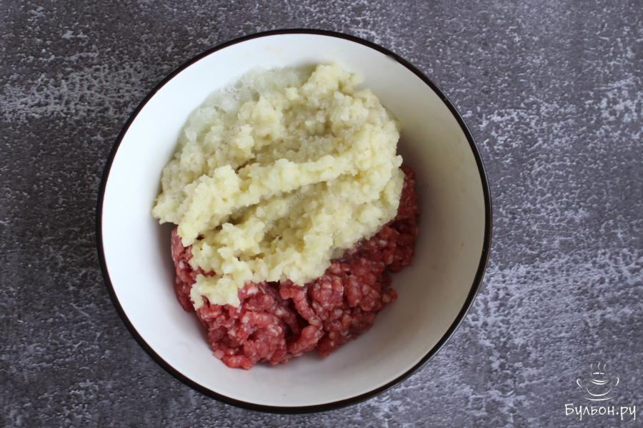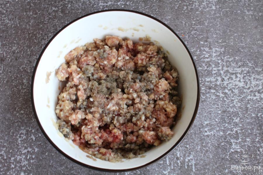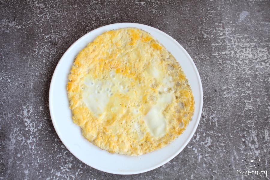 5. Из фарша сформировать лепешечки, выложить на серединку кусочек омлета, накрыть омлет фаршем и сформировать круглые зразы.
